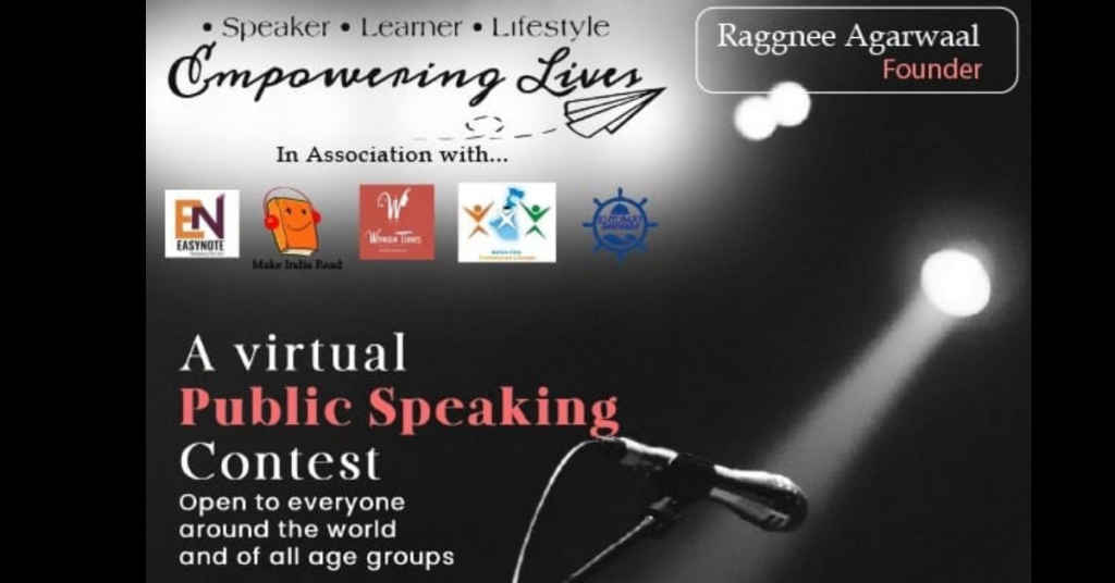 Woman Times Desk –  Empowering Lives, a brainchild of Raggnee Agarwal, has come up with a digital public speaking platform. This will improve and boost confidence in the people afraid of public communication. This is open to everyone and with the huge response to the contest, the team is positive about the impact on the masses. Mr Naseem Ali, former Deputy Commissioner of Police, Kolkata and an awardee of the Indian Police Medal by the President of India will be the Chief Guest for the final to be held on 25th October 2020.