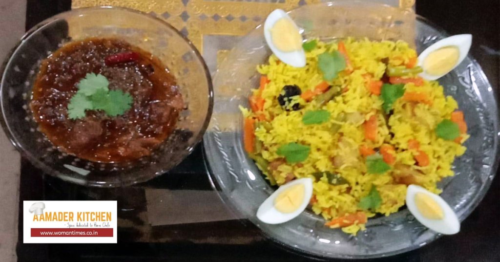 Tehri or Tahri is an ancient dish in Awadhi cuisine. With time, it has been modified and has appended flavours. It became highly popular during the Second World War II when meat was highly-priced and people were finding cheaper ways to cook. However, this remained a popular dish even after everything settled down. Today, this is prepared in various styles but here I present to you – Vegetable Tehri with Sabut Masala Mutton Stew.